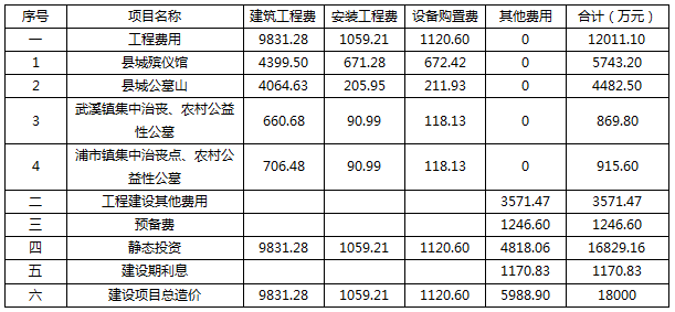 社會民生類項目,建設(shè)內(nèi)容涉及縣城殯儀館擴建、骨灰公墓山建設(shè)、集中治喪點等,收入來源為墓穴出售收入和殯葬服務(wù)收入,建設(shè)內(nèi)容和收入可為同類項目提供參考。