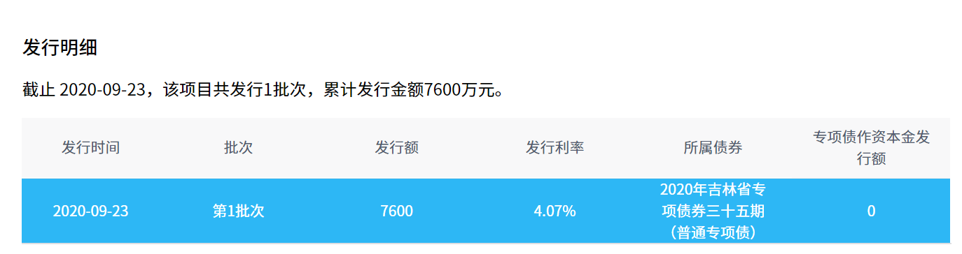 本方案項(xiàng)目總投資10004.24萬元,資本金來源為政府預(yù)算資金2404.24萬元,占總投資24.03%,計(jì)劃申請(qǐng)專項(xiàng)債融資7600萬元,占總投資75,97%。截止2020年9月23日,專項(xiàng)債資金7600萬元已全部發(fā)行成功。